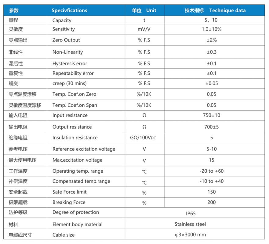 With the function of anti-overload protection. High precision, bidirectional bearing, easy to install. It is suitable for measuring and controlling the force value of batching scale, hook scale, electromechanical scale, packaging scale, material mechanics testing machine and other equipment.