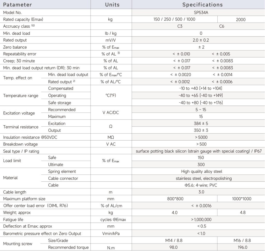 SP534A-150kg, SP534A-250kg, SP534A-500kg, SP534A-1t, SP534A-2t